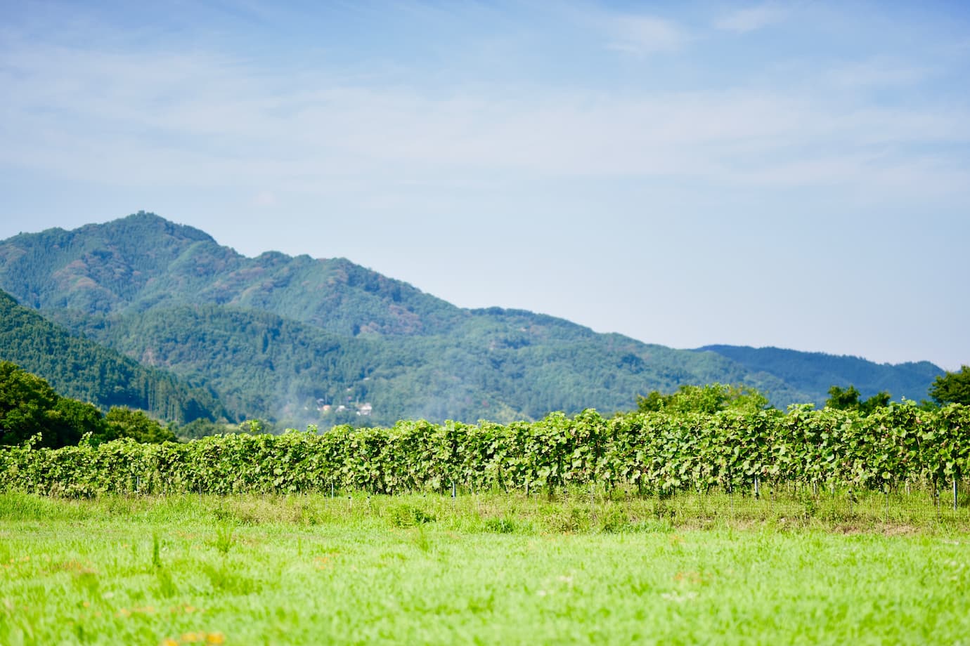 秩父の雄大な自然のなかにある自家畑。2ヘクタールほどの土地で約7,000本のブドウを栽培しています